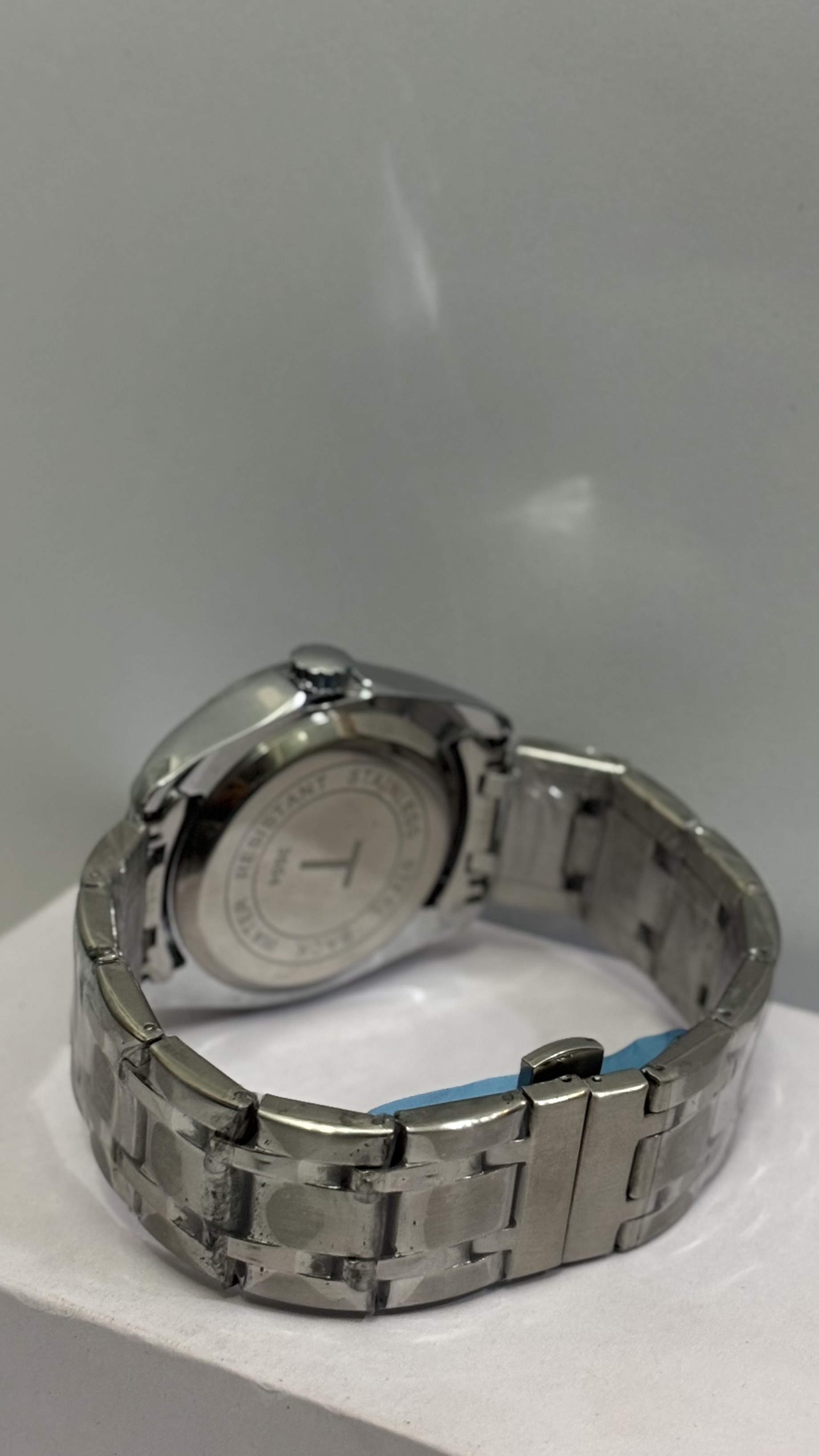 Elegant Tissot automatic watch with black dial and steel bracelet