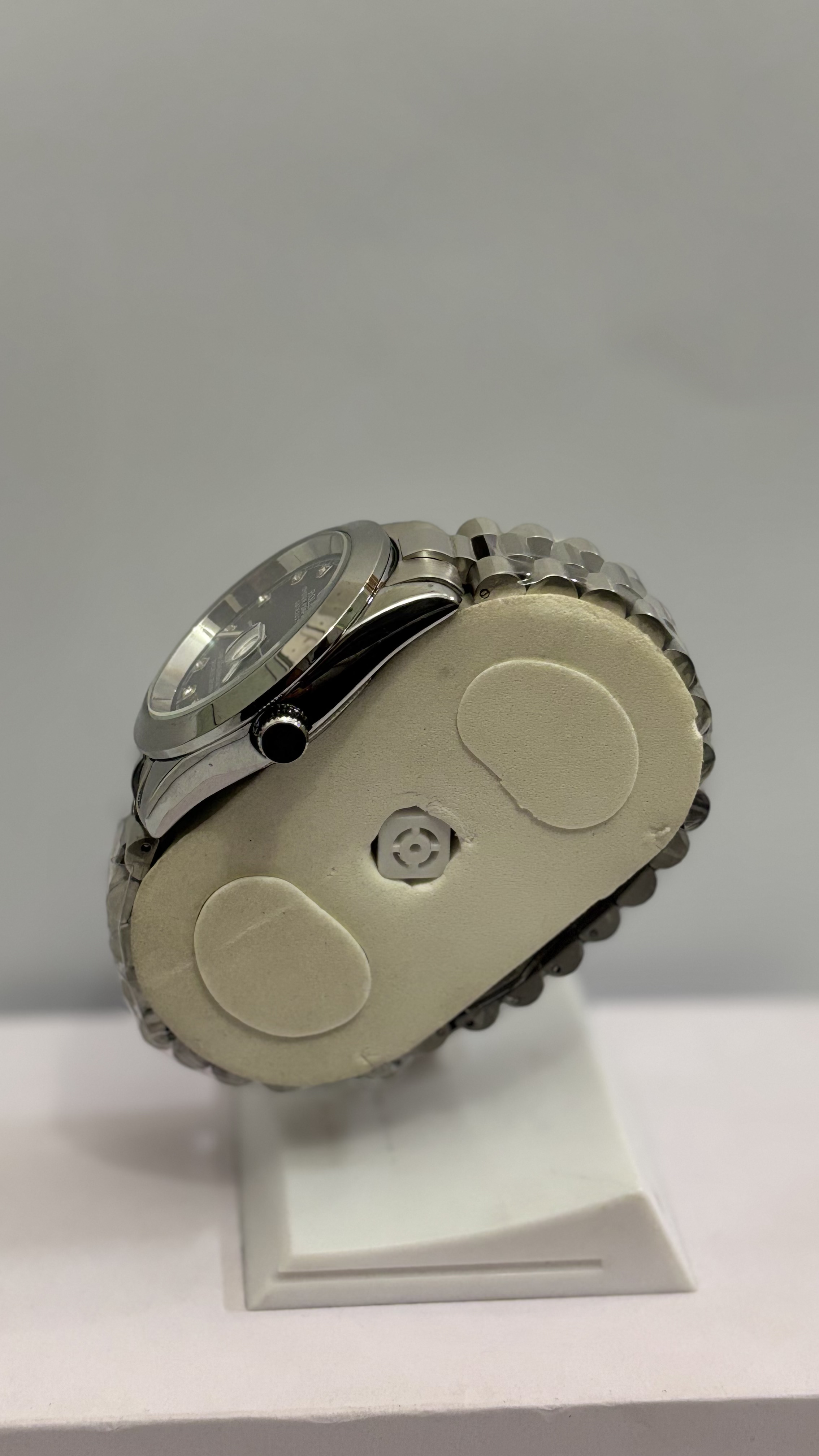 Rolex Datejust, steel Oyster bracelet, blue diamond dial, smooth bezel.