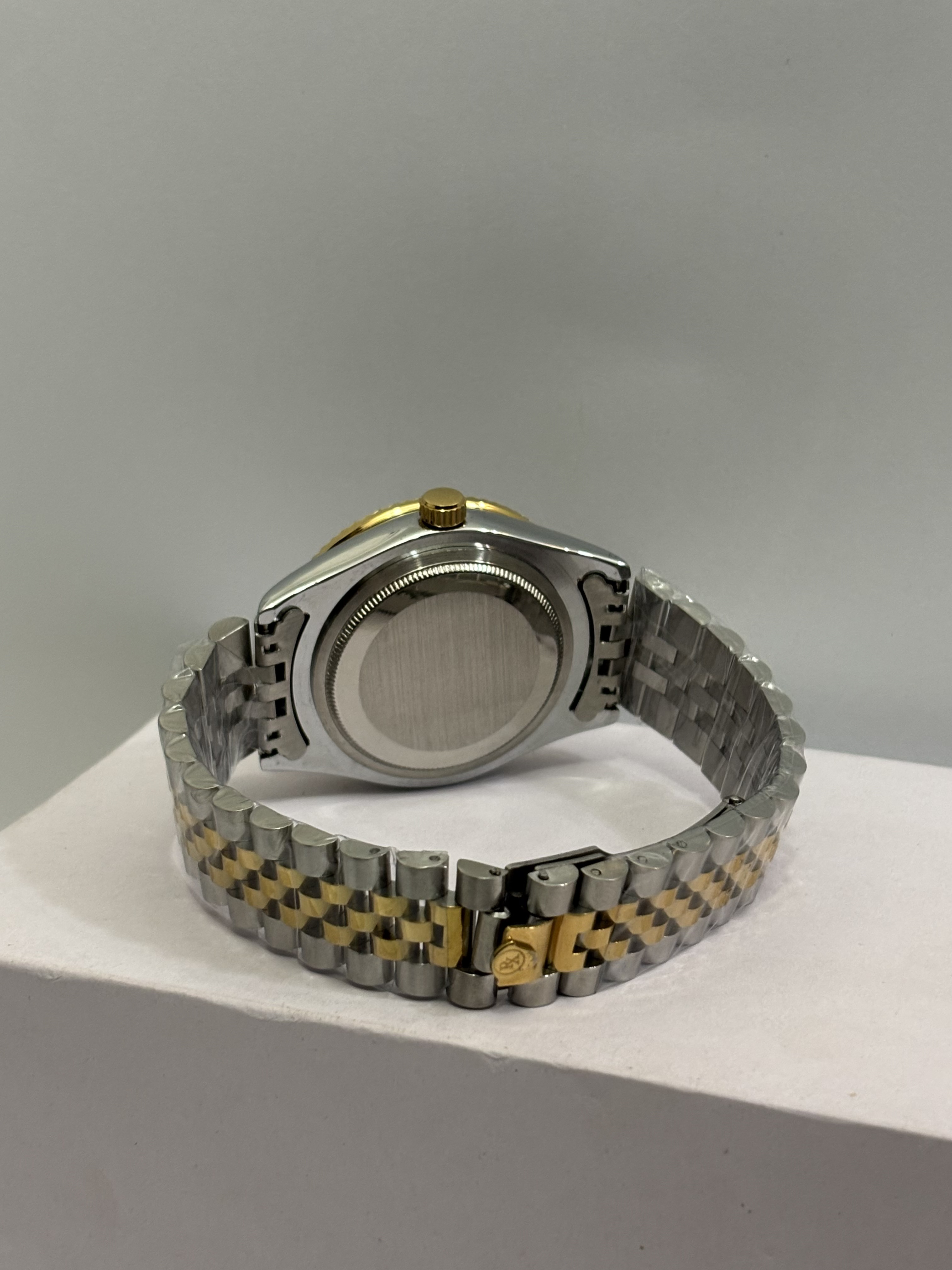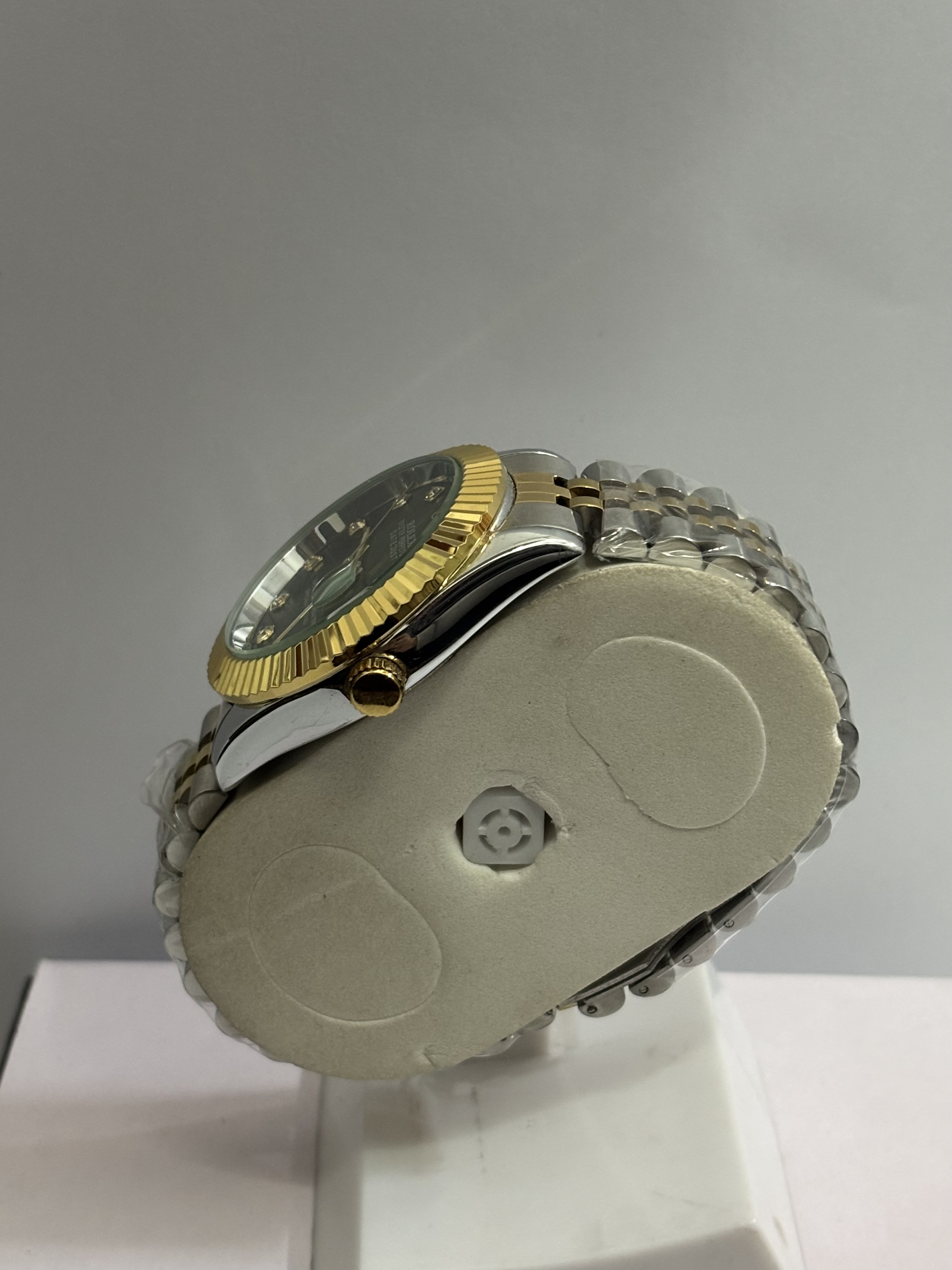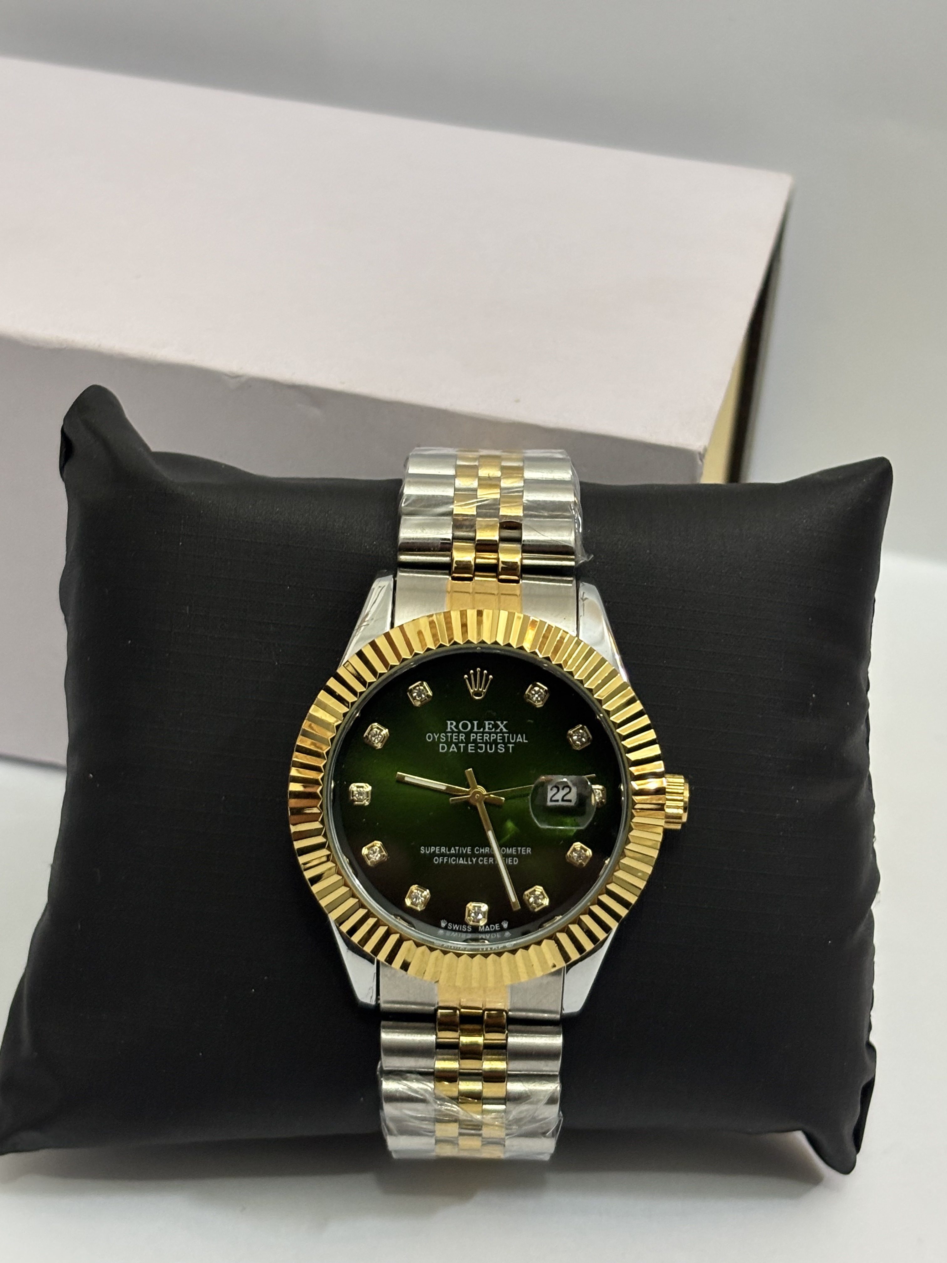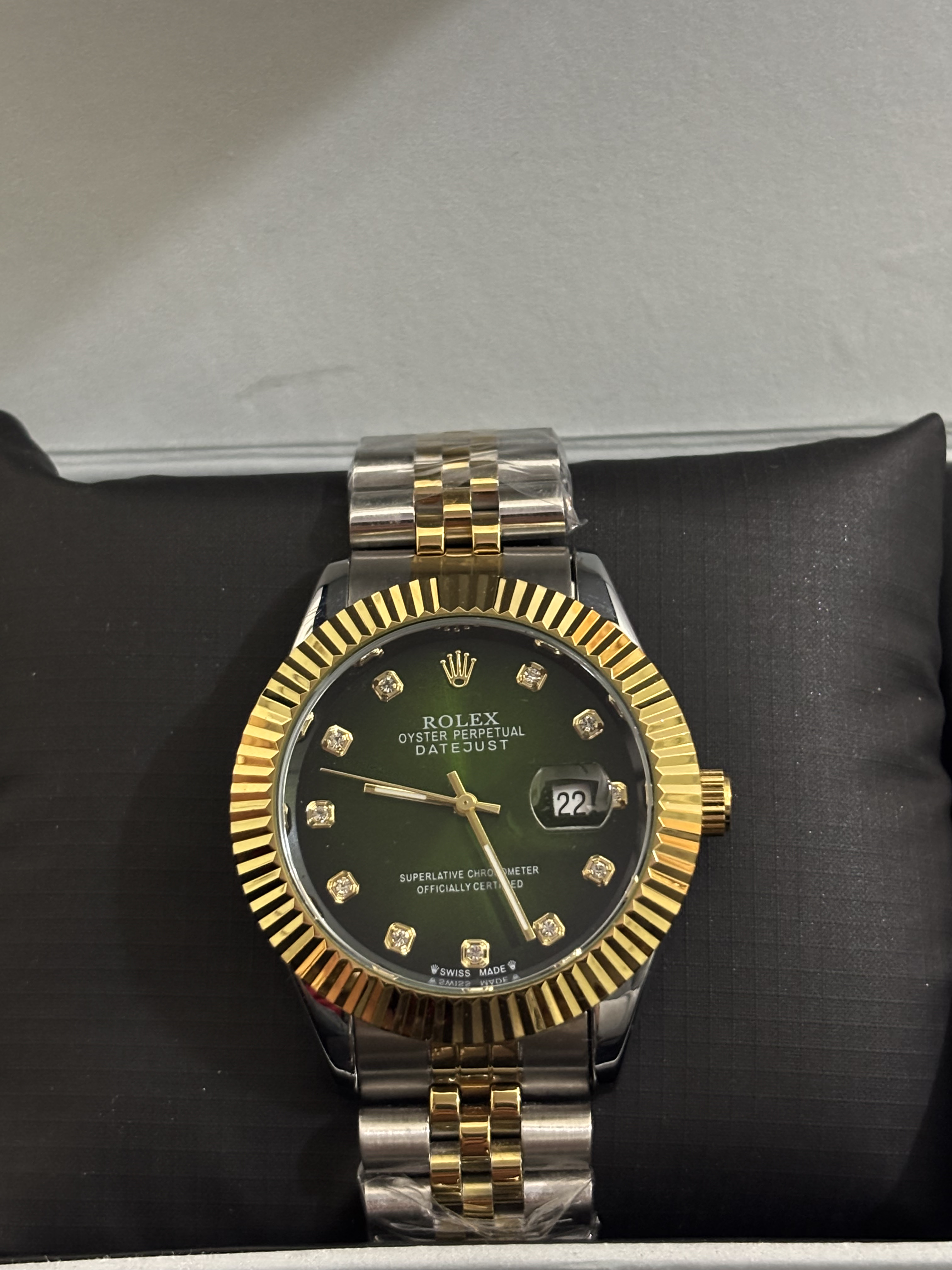 Rolex Datejust, two-tone Jubilee, green diamond dial, fluted bezel.